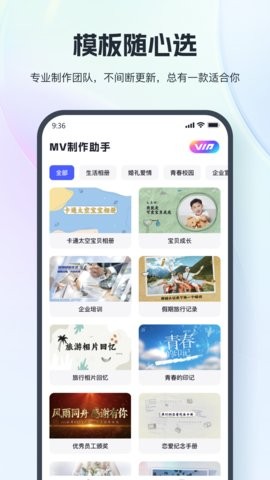 模板丰富多样:软件内置了涵盖生活、爱情、校园、企业等多种主题的MV模板库,并且持续更新,确保您总能找到最适合的模板来满足多样化的创作需求。