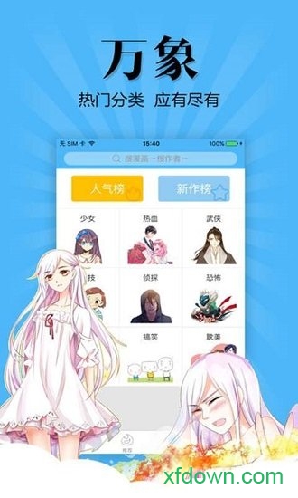 万象:涵盖20多个热门分类,从热血战斗到浪漫爱情,从悬疑推理到搞笑日常,应有尽有。