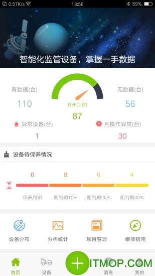 2、首页设备待保养情况按厂家规则计算,为您的设备"保驾护航",记得及时处理哟~新增保养提醒推送功能,支持设置提前提醒天数。