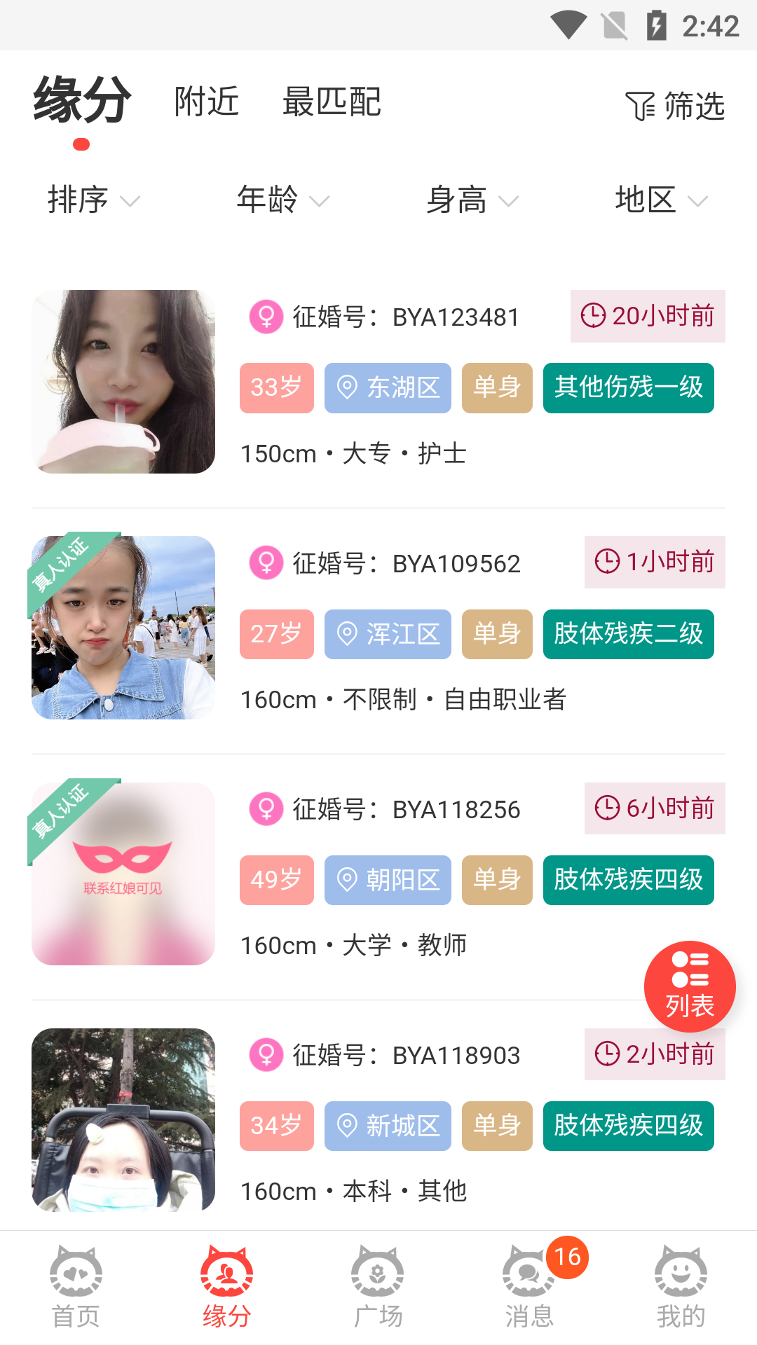 必壹爱是国内领先的残疾人婚恋交友平台,由杭州云外云智能科技有限责任公司运营,自2007年成立以来,已为数以万计的残疾人提供了专业的婚恋服务。平台汇聚了来自全国各地的单身会员,通过精准的匹配系统,帮助用户快速找到合适的伴侣。我们深知每一位残疾人的独特需求,因此利用大数据分析和智能算法,为用户提供个性化的推荐服务。无论是寻找爱情还是友情,必壹爱都能成为您值得信赖的伙伴,让每一位会员都能在这里收获幸福。