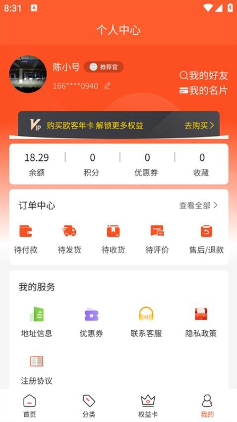下载欧客甄选app进入软件,注册并登录;新用户注册可领取专属优惠券,登录后即可享受会员特权。