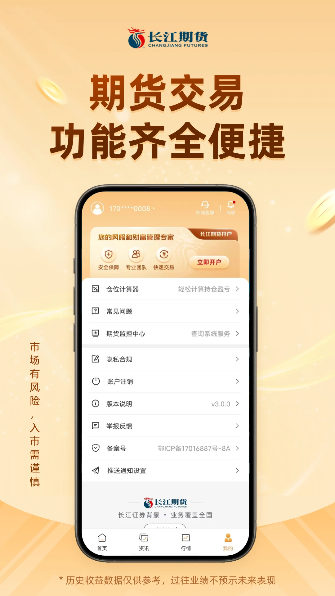 风险管理体系:内置保证金监控、强平预警、盈亏模拟等功能,结合长江期货专业风控团队24小时动态监测。