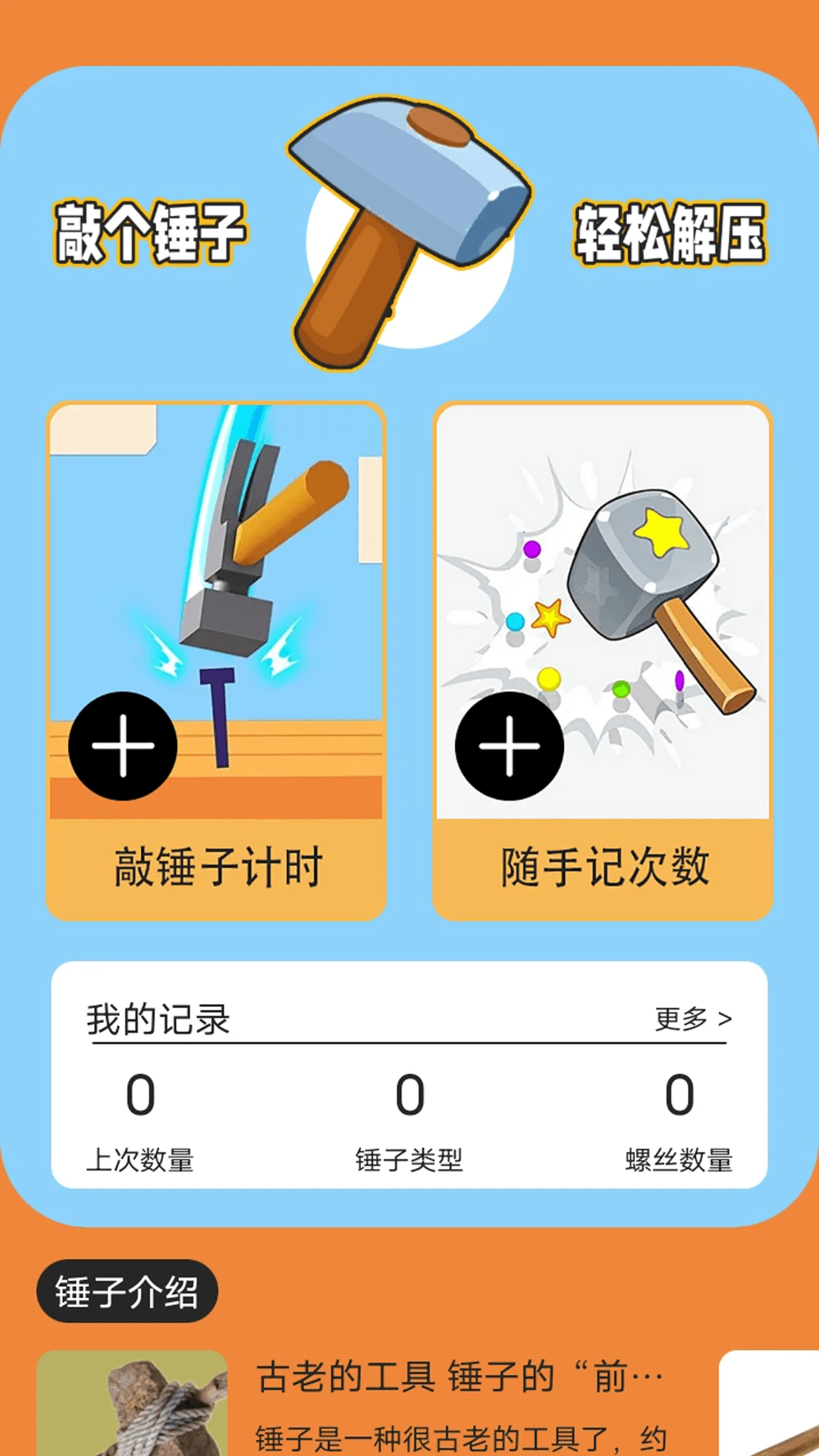除了基本的敲击功能外,敲个锤子还贴心地加入了次数记录系统,自动统计你的每一次敲击,让你清晰看到自己的解压成果。更有趣的是,软件内置了丰富的锤子百科知识,从常见的羊角锤到专业的木工锤,从古老的石锤到现代的气动锤,带你认识上百种不同用途的锤子,在娱乐的同时还能增长见识。