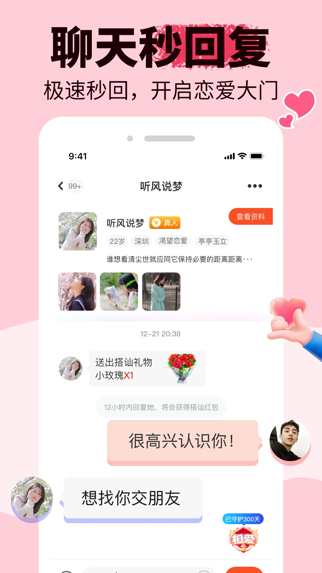 【视频通话】想要更直观地了解对方?视频通话功能让您跨越空间距离,实时看到对方的真实容颜。无论是灿烂的笑容还是温柔的眼神,都能通过高清画质完美呈现。系统采用先进的加密技术,确保您的每一次视频交流都安全私密,让您放心地展现最真实的自己。