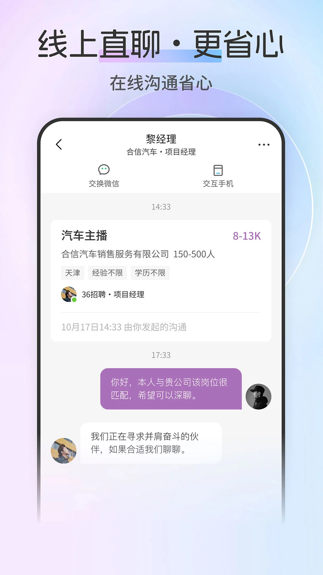 创新的即时通讯功能让求职者可以直接与招聘方对话,详细了解工作内容、薪资待遇等关键信息。这种面对面的交流方式打破了传统简历投递的隔阂,让求职者能更直观地"面试"未来老板,选择最适合自己的工作环境。系统还支持语音、视频等多种沟通方式,满足不同用户的交流偏好。