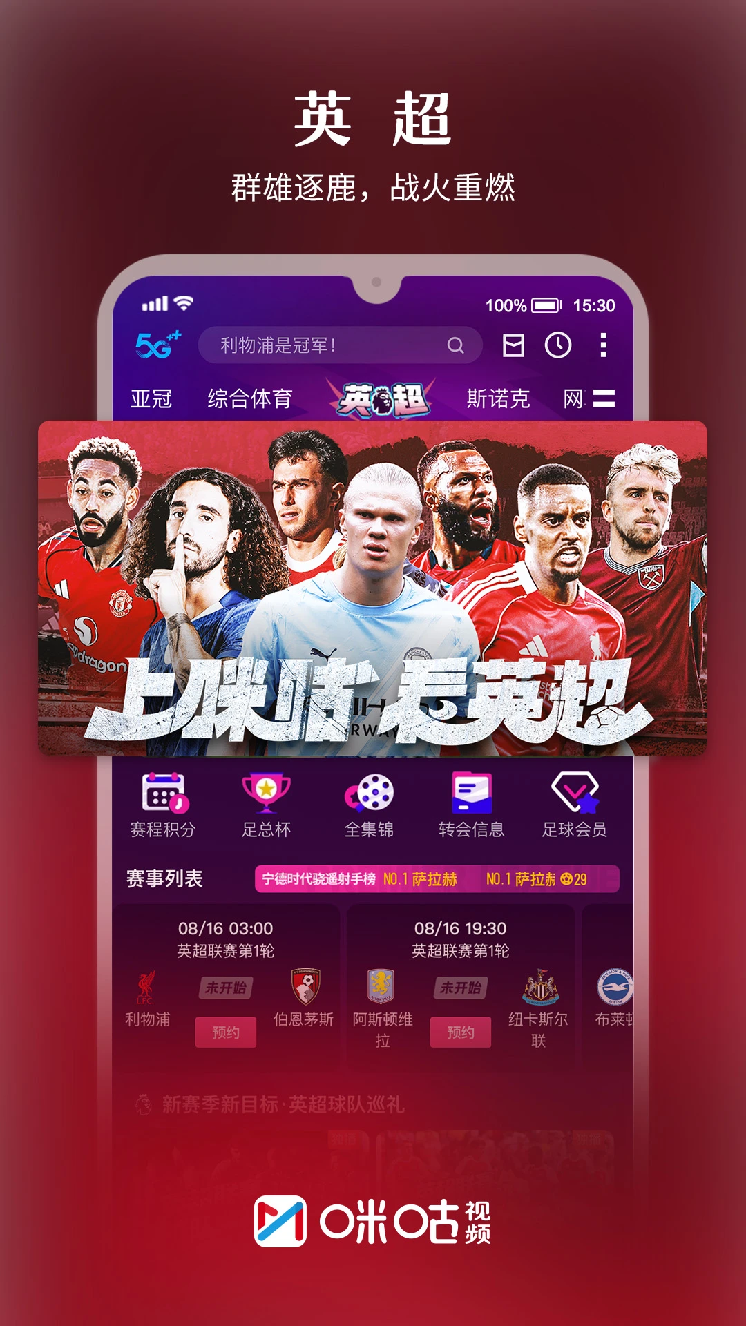 咪咕视频汇聚全球顶级赛事与精彩内容,为您打造沉浸式视听盛宴!在这里,您可以尽情欣赏各大赛事的巅峰对决,感受竞技体育的无限魅力。英超、西甲、德甲、意甲、法甲五大联赛激情碰撞,NBA、CBA篮球赛事扣人心弦,WTT乒乓球赛事精彩纷呈,UFC格斗比赛热血沸腾,更有中网等顶级网球赛事轮番上演。专业大咖解说团队为您带来深度赛事分析,4K超高清画质让您仿佛置身现场,体验前所未有的观赛享受。