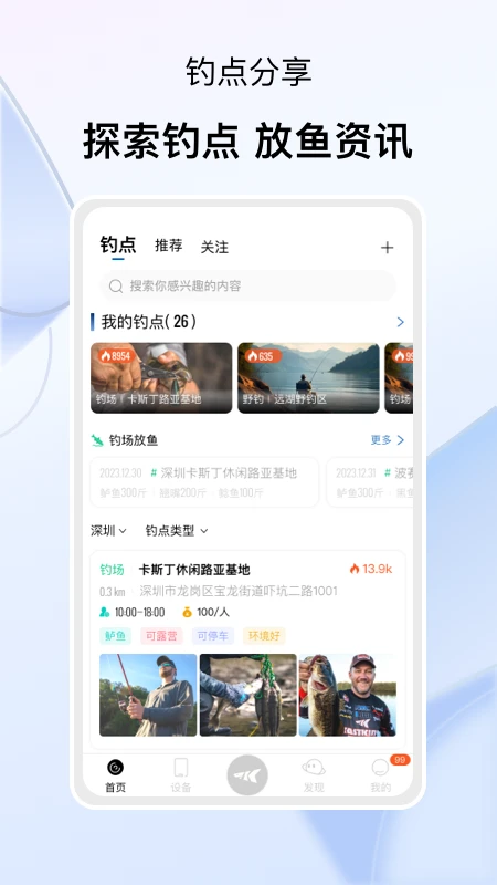 精准的钓点推荐和导航功能,帮助用户发现更多优质钓点,提高渔获率。