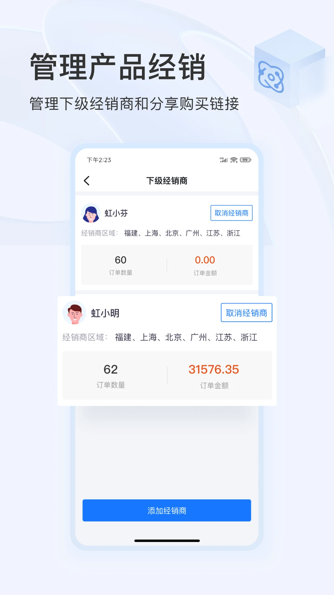 在产品经销管理方面,平台提供了完善的下级经销商管理体系,商家可以轻松管理分销网络,并通过生成专属购买链接来拓展销售渠道。这种创新的分销模式大大提升了产品的市场覆盖面和销售效率。