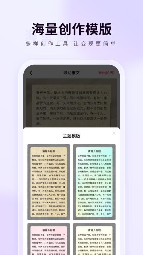 智能推文助手功能强大,能帮助你快速完成各类图文创作。自动排版、智能配色、文案建议等功能一应俱全,即使是文字创作也能变得简单有趣,提升你的社交媒体表现力。