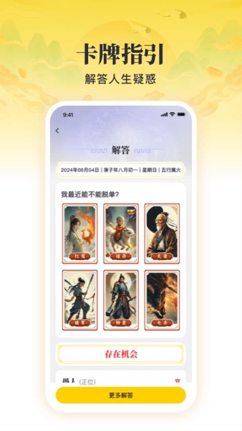 提供多种主题的卡牌选择,用户可以通过抽卡方式获取人生指引,在迷茫时获得灵感启发,找到前进方向。