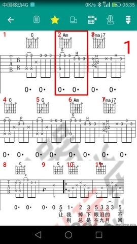 在横屏的情况下,可以查看到文本格式的吉他谱,查看更加方便,支持夜间模式保护视力