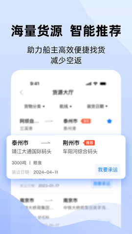 找货更便捷:运吨吨平台汇聚了众多经过严格认证的企业货主,他们提供的货源都是一手严选、真实可靠。利用大数据智能船货匹配系统,平台能够为用户精准推荐合适的货源,让您找货过程省时又省心。平台还支持多种筛选条件,包括货物类型、运输距离、装卸时间等,帮助船东快速找到最符合需求的货源,大幅提升找货效率。