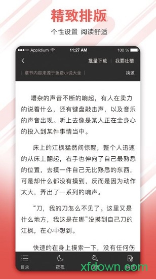 提供15种字体、20种背景配色方案,可调节行距字距。创新开发"护眼模式",根据环境光自动调节色温。支持横竖屏切换,阅读数据统计功能帮助培养阅读习惯。
