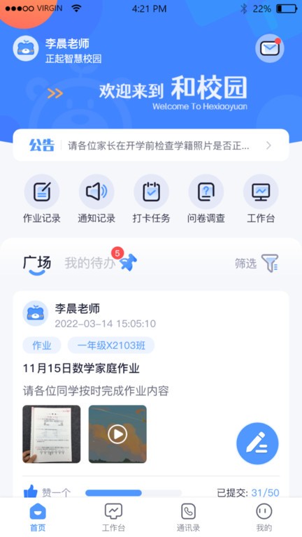 专为教师设计的校讯通软件,整合家校沟通、班级管理、智慧教学三大核心功能,打造一体化教育服务平台。
