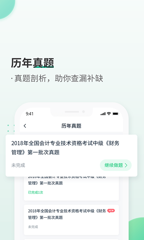 恒企会计职称题库app是一款专为会计职称考试打造的智能学习平台,汇聚了海量优质题库资源。无论是初级会计、中级会计还是注册会计师考试,这里都能找到对应的历年真题和模拟试题。软件采用智能算法分析考试重点,帮助用户高效备考。每日更新的AI精选课程和错题强化功能,让学习更加科学系统。18年专业教育经验沉淀,确保每道题目都紧扣考纲,是会计考生提升成绩的得力助手。