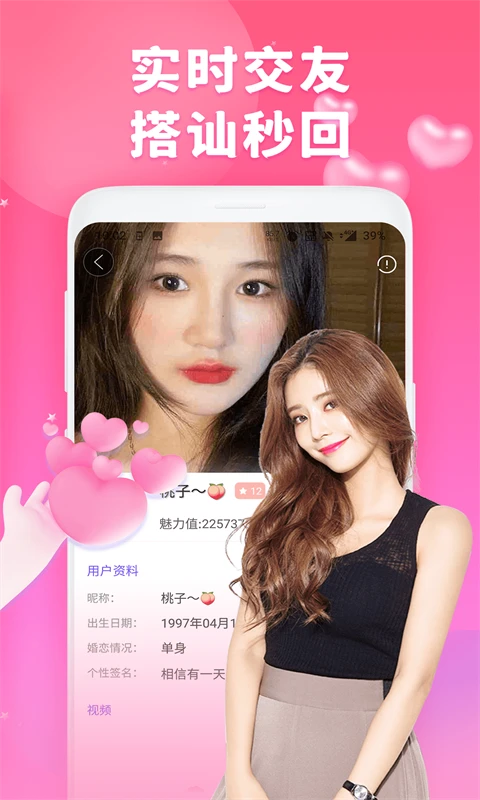这款软件集交友、聊天、约会、相亲、恋爱等多种功能于一体,为用户提供全方位的社交体验。你可以通过文字、语音或视频与陌生人互动,发现共同的兴趣爱好,开启有趣的对话。平台还支持附近的人搜索功能,让你轻松找到身边的潜在约会对象。