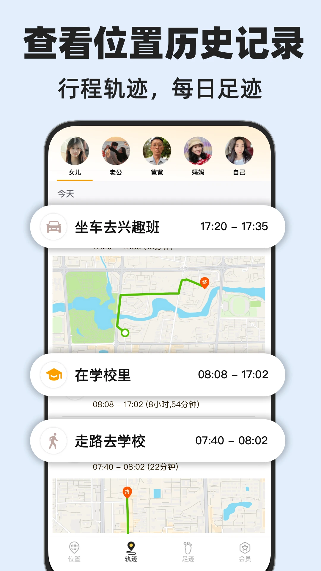 全方位状态监测系统可实时显示家人设备电量、网络信号强度、移动速度等20+项数据。智能分析日常活动规律,当检测到异常停留或长时间未移动时主动预警,运动健康模块还能记录步数和卡路里消耗。