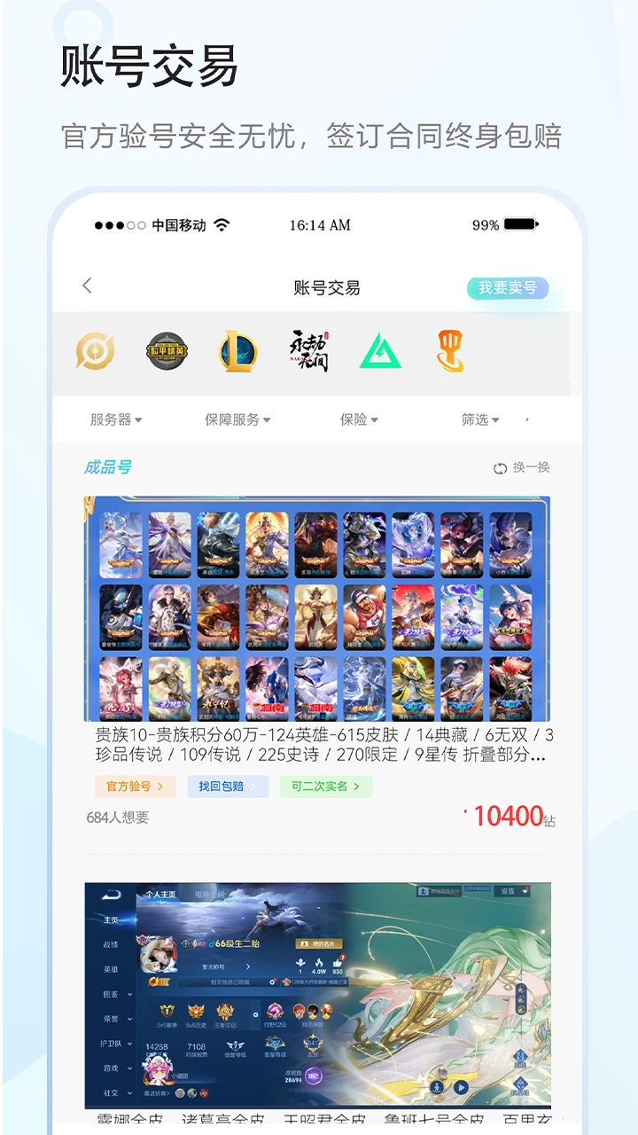 账号交易:全品类游戏账号交易平台,官方中介担保交易,提供7×24小时客服支持