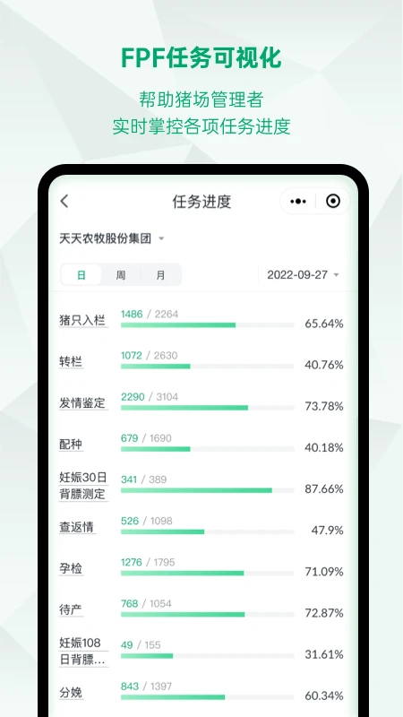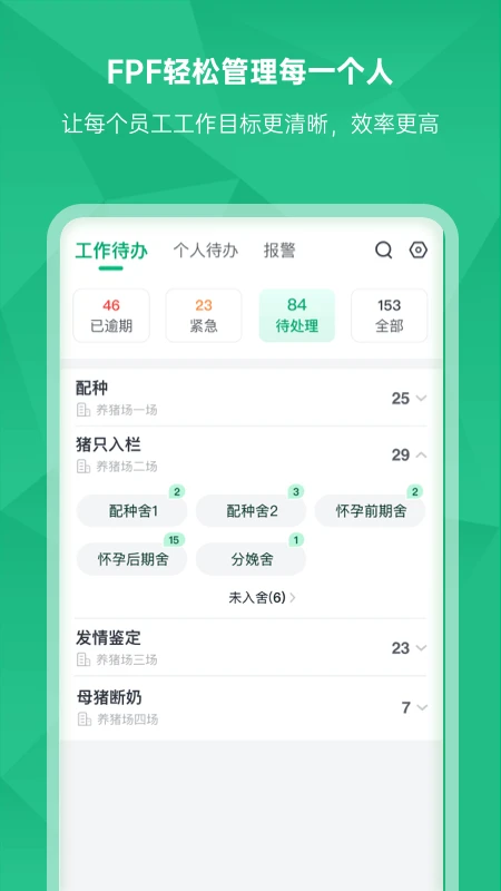 智能养猪新时代,未来猪场(FuturePigFarm)助您轻松实现数字化养殖!FPF未来猪场app是一款集智能化、精准化、数字化于一体的专业养猪管理平台,包含精准营养、智能查情、智能防非、设备管控等核心功能模块,全面覆盖养猪全周期、全流程、全场景,帮助养殖企业实现人、猪、物、场、企的实时在线精准化管理。通过生产数据的实时采集与分析,FPF让养殖管理更高效、更科学、更智能。使用FPF,老板只需一部手机即可统揽全局,随时掌握猪场运营状况;员工操作简单便捷,大幅提升工作效率,真正实现省时省力又省心!