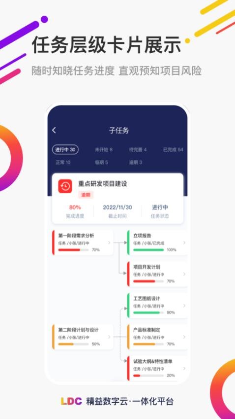 在LDC精益数字云一体化APP中,用户首先可以创建工作任务,设置任务详情和负责人,系统会自动提醒相关人员;平台会将任务需求数据进行智能统计,并以图表形式直观展示,方便用户随时掌握需求动态;审批事项中心集中管理所有待办审批,支持批量处理和电子签名;扫描任务单功能可以快速识别纸质文档,实现线上线下无缝衔接;异常事件提报功能支持多级分类和优先级设置,确保重要问题得到及时处理。