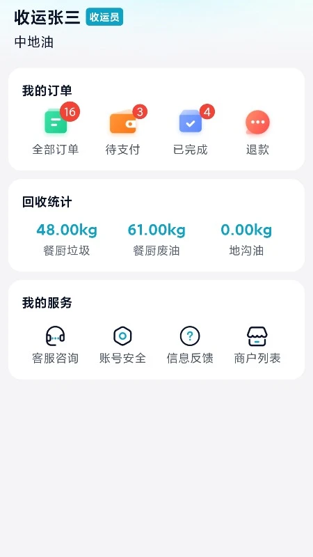 App用户收运单位指具备政府部门认可并颁发具有餐厨垃圾、餐厨废油或地沟油收运相关有效资质的单位。这些单位通过App可以高效管理收运任务,实时记录收运数据,生成规范的电子台账。系统还支持收运路线优化、收运量统计等实用功能,帮助收运单位提升工作效率。收运单位可以随时查看历史收运记录,便于追溯和管理,确保餐厨废弃物的合规处置。