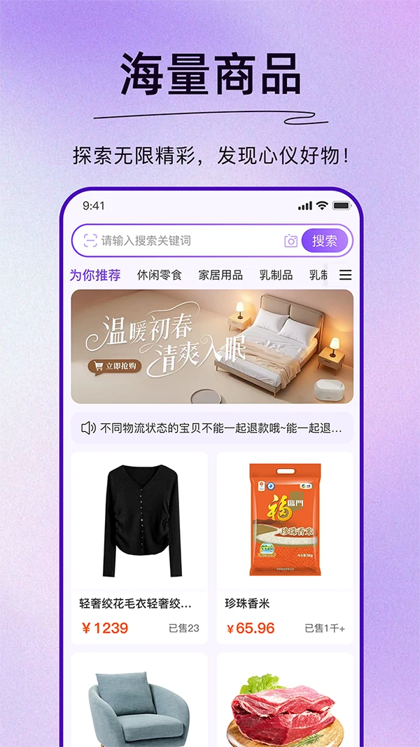 为了让您的购物体验更加便捷愉快,我们不断优化平台功能和服务。从智能搜索推荐到个性化商品展示,从快速物流配送到贴心售后服务,每一个环节都力求做到尽善尽美。同时,我们还定期推出限时折扣、满减优惠、会员专享福利等超值活动,让您在享受购物乐趣的同时,更能收获意想不到的惊喜。