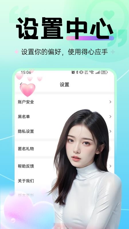 附近有她APP是一款专为单身人士打造的社交软件,致力于提供高质量的聊天和互动体验。通过智能匹配系统,用户可以轻松结识志趣相投的朋友,享受简单有趣的交友方式。平台采用严格的实名认证机制,确保用户信息真实可靠,营造安全放心的社交环境。此外,软件还提供多样化的私信和聊天玩法,让用户随时随地开启愉快的社交互动。无论是寻找朋友还是邂逅爱情,附近有她都能满足你的需求,快来下载体验吧!