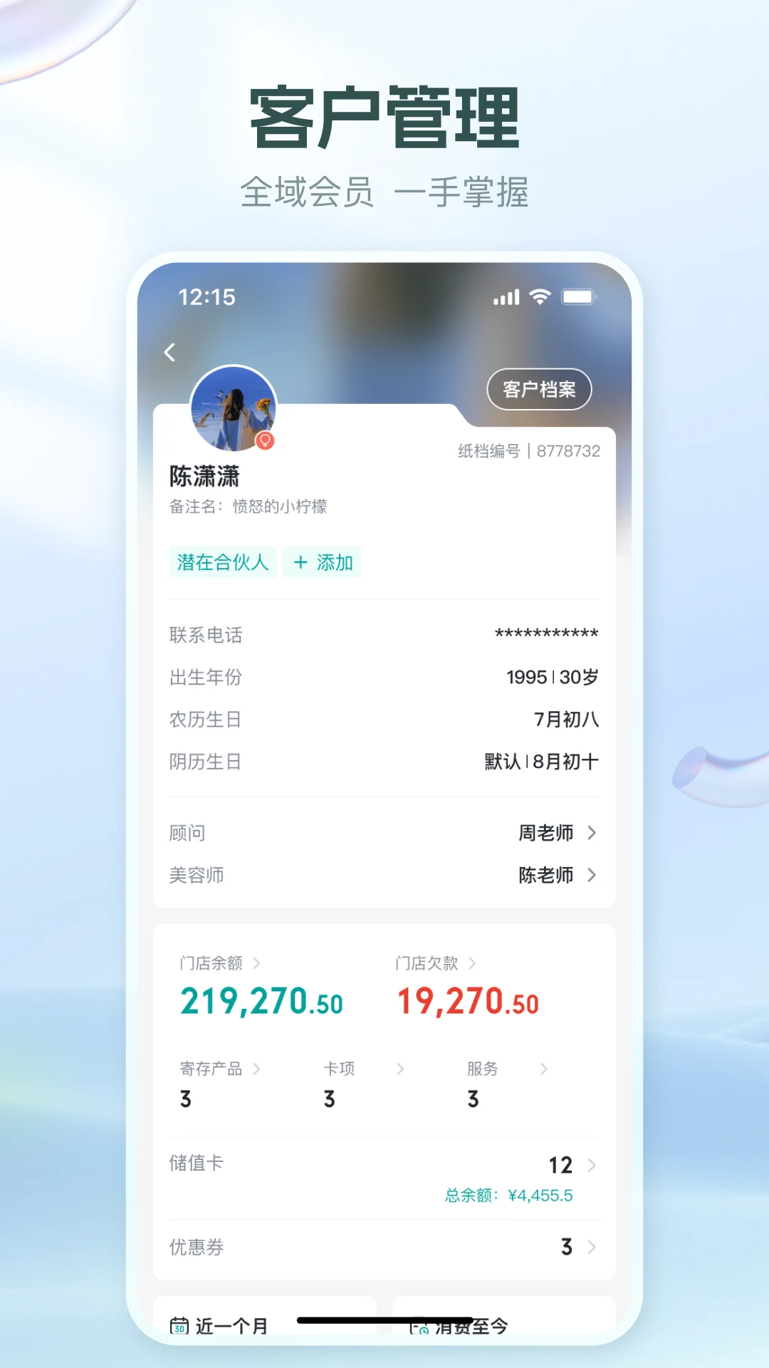 系统采用先进的云计算架构,支持多人实时协同工作,无论是前台接待、美容师还是管理层,都能在同一平台上高效协作。通过智能化的业务流程设计,美上云端大幅提升了美容院的工作效率,减少了人为错误的发生。您可以轻松实现客户档案的电子化管理,精准记录每位顾客的消费习惯和服务偏好,为提供个性化服务奠定坚实基础。