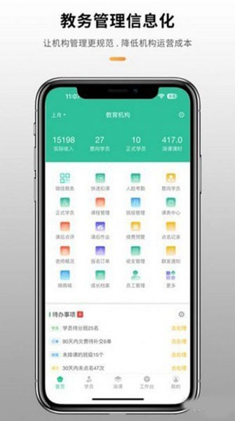 具备了多种多样的管理功能,可以帮助机构轻松管理事务,覆盖招生、教学、财务全流程