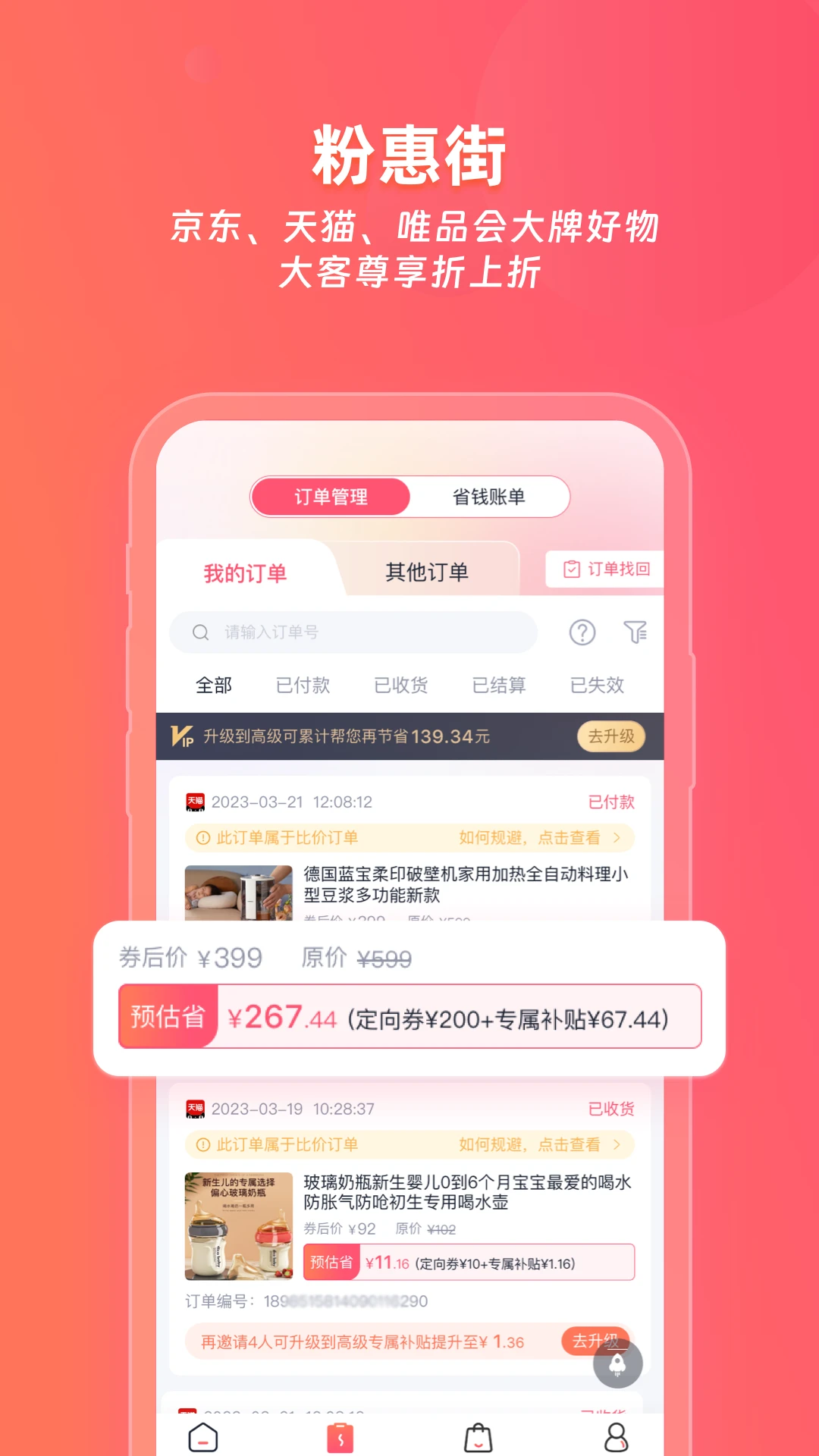 下载粉惠街APP,成为大客户内购福利用户,立享京东、天猫、唯品会大牌好物折上折,每单更有大客户专属补贴