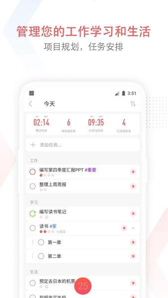 你可以用它来制定工作学习计划,记录购物清单,设置生日提醒或者用来安排日程,生活工作中所有的大小事,app都能帮你轻松搞定。智能分类系统和多级标签功能让事务管理更加井井有条,重要事项再也不会遗漏。
