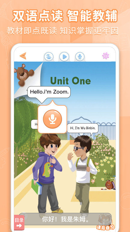 教材点读系统获得30余家出版社官方授权,支持中英文双语对照学习,课文朗读配备专业播音员录制版本