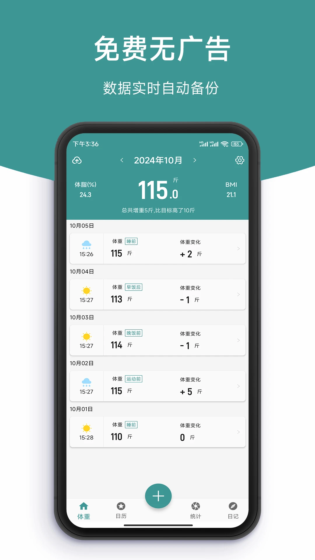 无论您的目标是减脂塑形、增肌健体,还是维持现有体型,记体重本都能成为您最忠实的记录伙伴。我们不仅记录数字,更见证您的每一次努力与进步。通过长期的数据积累,您可以清晰看到身体变化的每一个细节,这些珍贵的记录将成为您健康旅程中最真实的见证。让记体重本陪伴您度过每一个重要的健康时刻,共同见证身体的变化与成长。