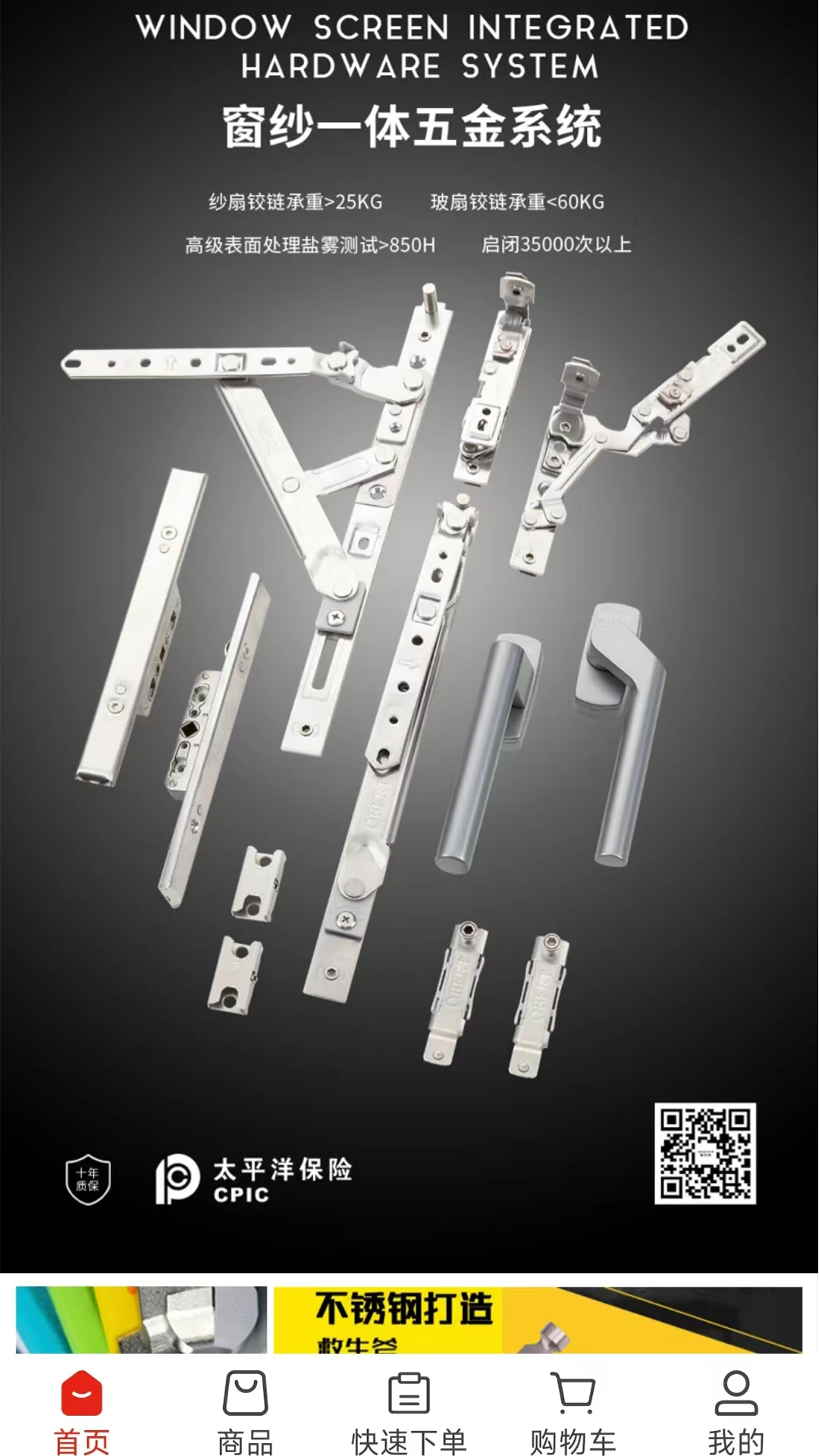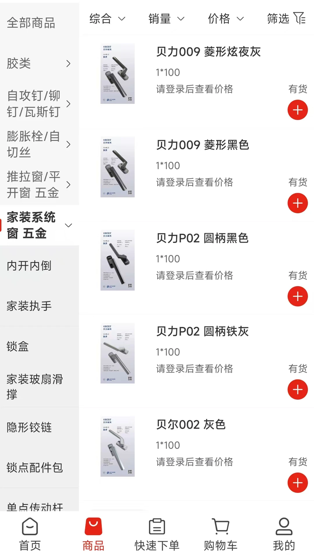 这是一款功能强大的线上商城软件,为广大用户提供了便捷高效的一站式购物体验。软件专注于门窗配件、五金工具和粘胶产品的销售,商品种类丰富齐全,能够满足不同用户的多样化需求。用户可以通过这款软件轻松浏览和选购各类高品质商品,从门窗锁具、合页滑轮到各类胶粘剂应有尽有。