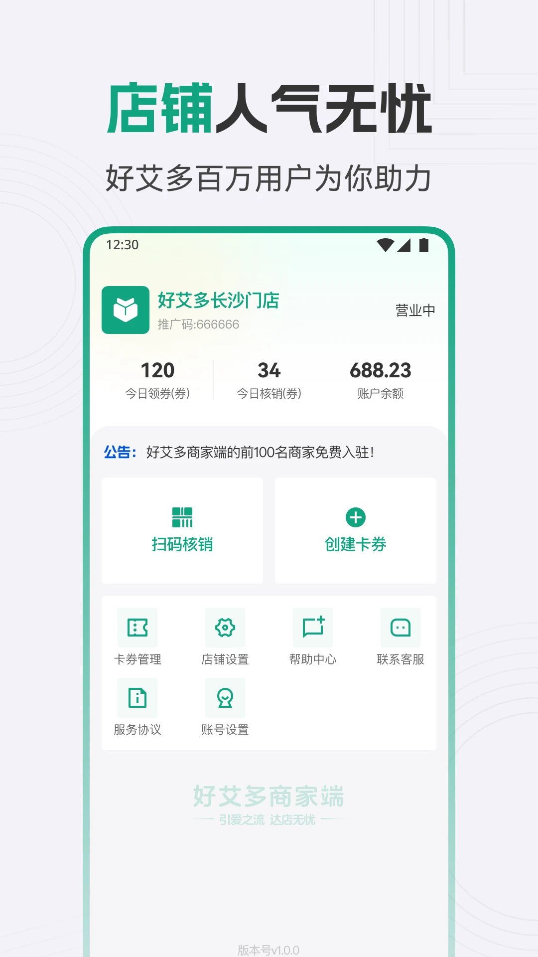 本应用专为商家门店打造,提供全方位的数字化经营解决方案,帮助商家实现高效运营与客户增长。通过智能化的功能设计,商家能够轻松完成店铺管理、营销活动策划、数据分析等核心业务,显著提升门店运营效率。无论是日常订单处理还是长期经营规划,都能通过简洁直观的操作界面快速完成,让商家专注于提升服务质量与顾客体验。同时,系统支持多维度数据统计,帮助商家精准把握经营状况,为决策提供有力支持。