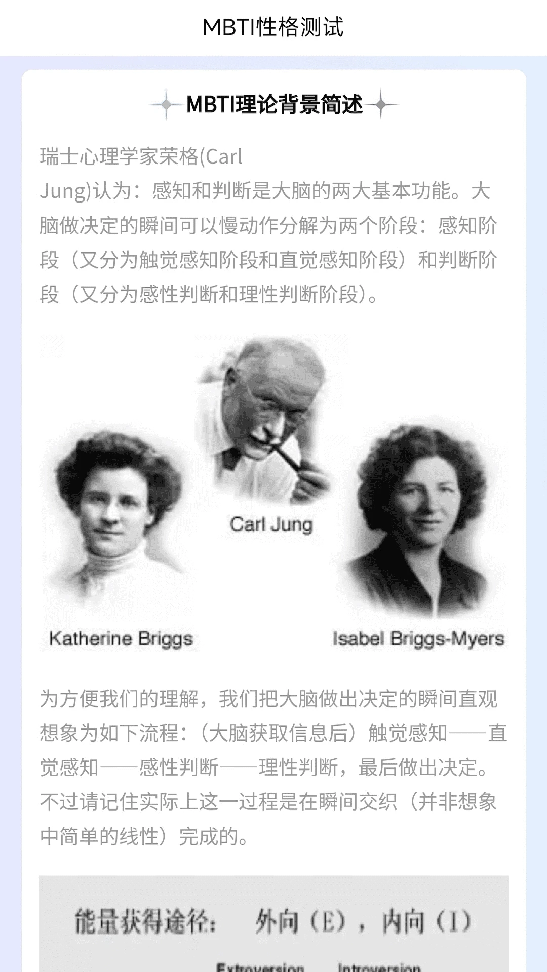 MBTI(迈尔斯-布里格斯类型指标)是一种广受欢迎的心理测评工具,旨在帮助人们深入了解自己的性格类型和行为偏好。通过一系列精心设计的问题,MBTI将个体的性格划分为16种不同的类型,每种类型都反映了人们在能量获取、信息处理、决策方式和生活态度上的独特倾向。这一工具不仅能够提升自我认知,还能为职业选择、团队协作和人际关系提供有价值的参考。无论你是希望更好地了解自己,还是想改善与他人的互动,MBTI都能为你提供实用的洞察。