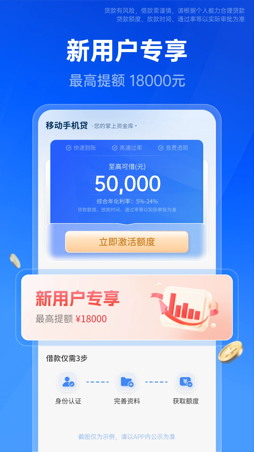 移动手机贷是一款专注于为个人用户提供快速、安全、灵活现金借款服务的专业网贷平台。平台覆盖100元至20万元的广泛额度范围,能够满足从日常小额应急到大额消费的多样化资金需求。通过与正规银行及持牌金融机构的深度合作,移动手机贷确保每一笔贷款都符合金融监管要求,同时采用智能风控系统为用户提供个性化贷款方案。无论是上班族、创业者还是自由职业者,只需身份证即可享受1分钟申请、2分钟审批的极速服务,搭配最长12期的灵活分期选项,真正实现"人人可借"的普惠金融理念。