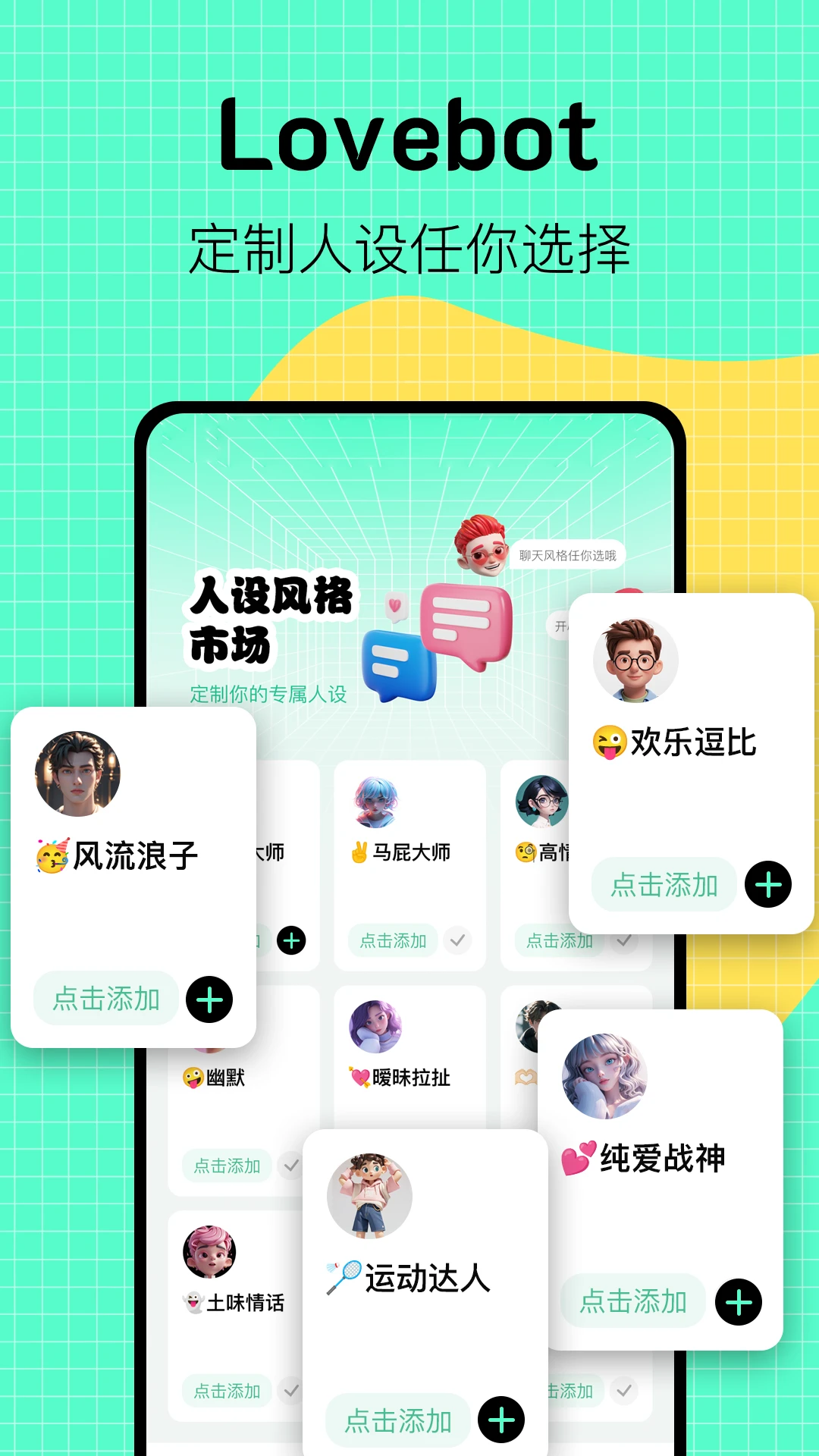 找不到话题?LoveBot键盘为您解忧!内置多样个性与性格的人物,无论是与对象、职场同事还是朋友聊都能为您提供丰富的回复选择,让聊天不再冷场。此外,系统还会根据对方的回复内容和语气变化,实时调整推荐话题,确保对话始终保持新鲜感。从日常寒暄到深度交流,海量话题库满足各种社交需求,让您成为真正的聊天达人。