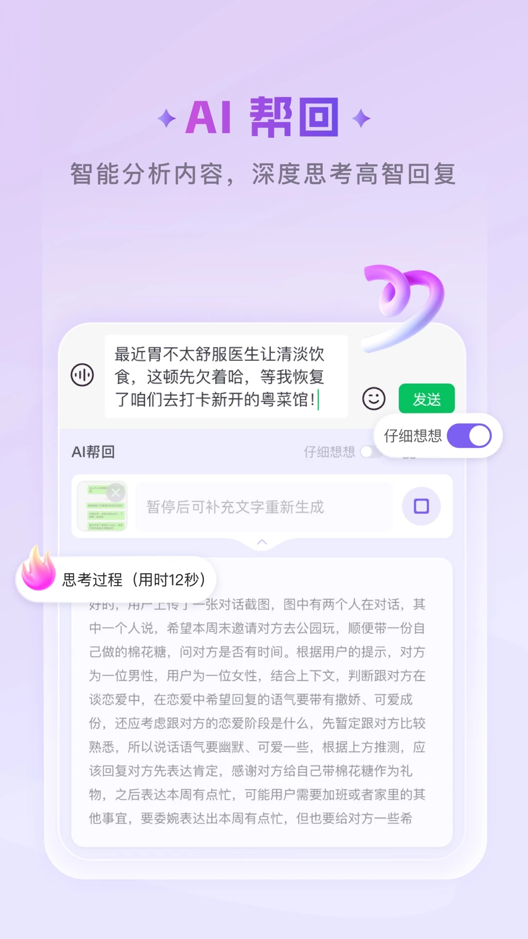 豌豆羊输入法的智能替身回复功能能够根据聊天上下文自动生成符合语境的回复内容,大大提升聊天效率。系统内置了多种风格模板,从幽默风趣到正式得体应有尽有,满足不同场合的沟通需求。这项功能还能学习用户的表达习惯,随着时间的推移,生成的回复会越来越符合个人风格。特别适合在忙碌或需要快速回应时使用,让你不再为组织语言而烦恼。