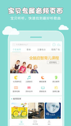 【音乐熏陶】包含各类适合儿童的经典音乐,如胎教音乐、摇篮曲等,培养孩子的音乐素养;