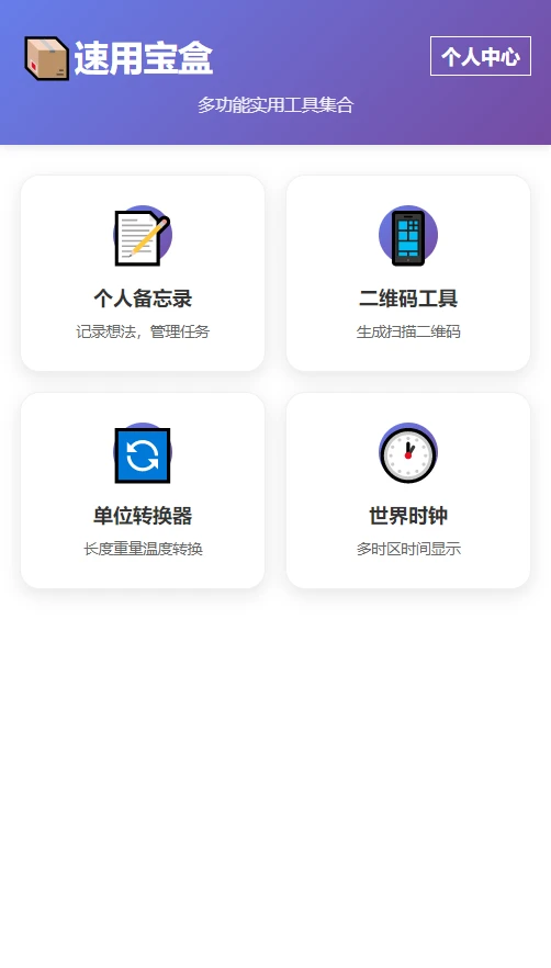 速用宝盒集个人备忘录、二维码生成、单位转换、世界时钟于一体,一站式解决工作生活小难题。快速记录待办事项,轻松生成各类二维码,实时换算货币尺寸,全球时间一目了然,高效生活触手可及!