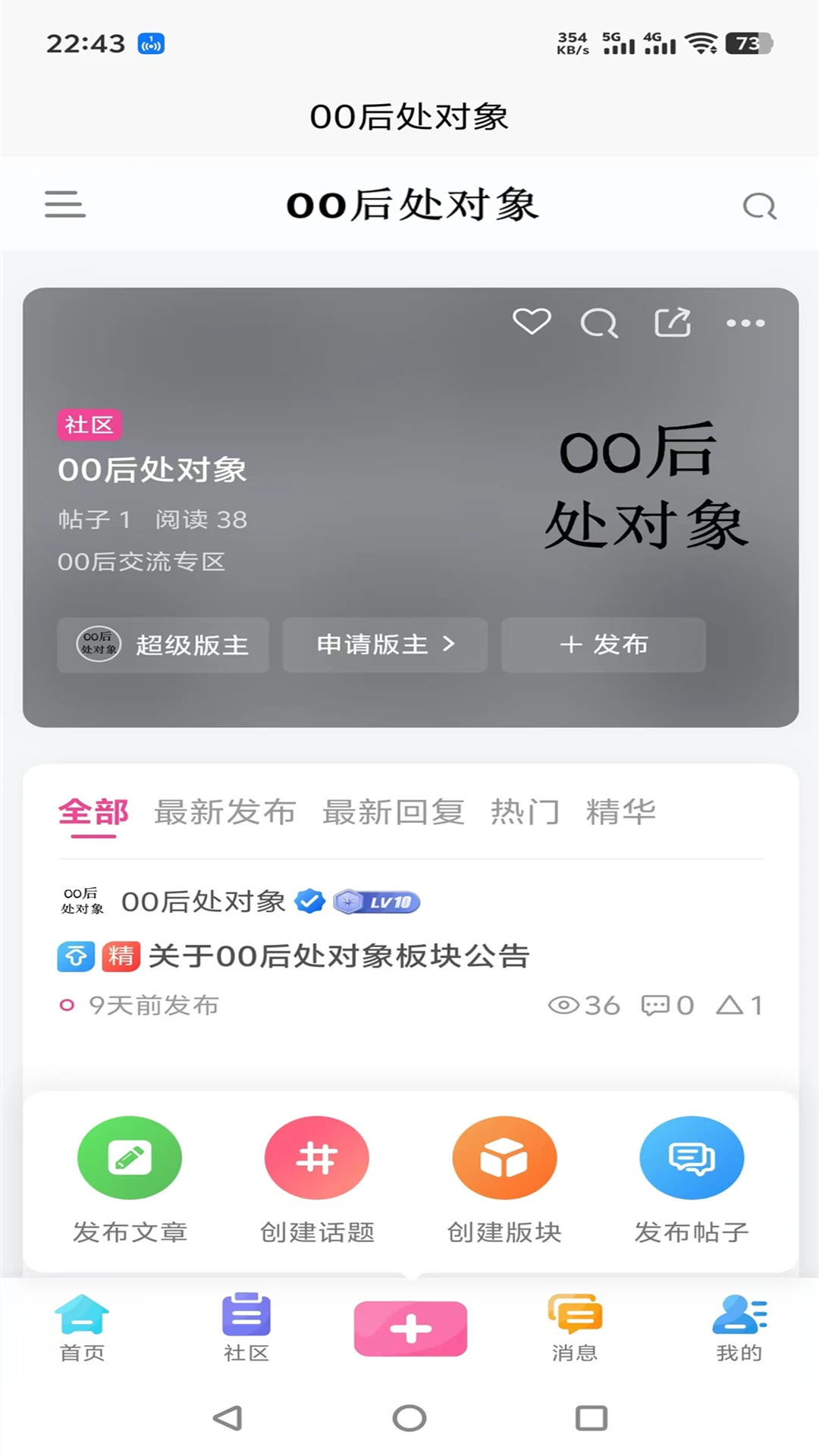 【板块功能】创建板块后,可以在相应的版块发布内容与用户交流沟通等
