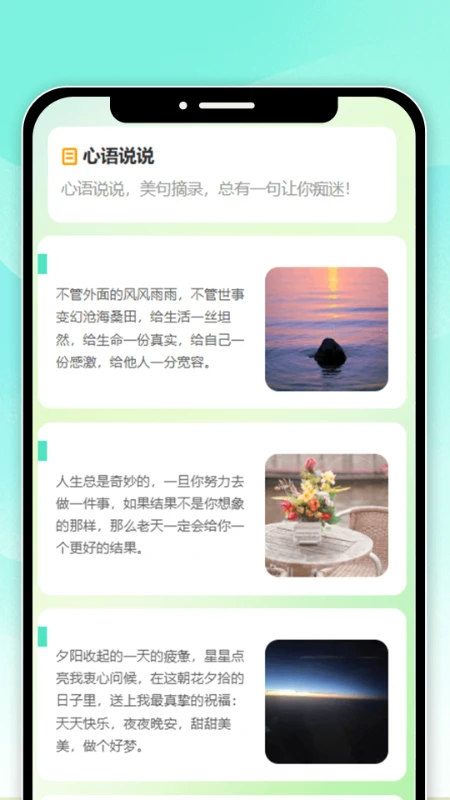 心语说说:精选美句与心情标签,让用户轻松表达每日心情与感悟,与志同道合的朋友共鸣。