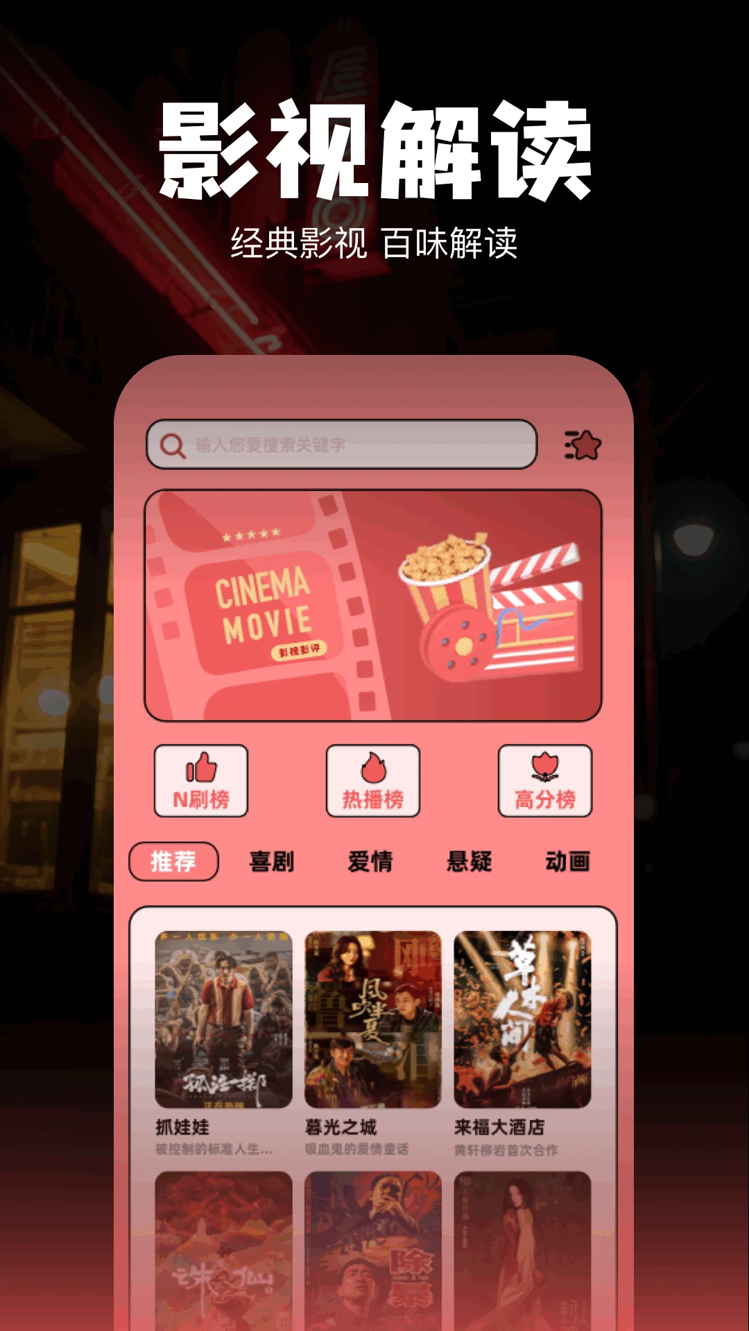 涵盖影视影评、排行榜、播放器及互动猜剧等板块。影评区可交流优质内容,排行榜有不同类型热门影视推荐,从科幻动画到悬疑犯罪,满足多样观影喜好;播放器支持本地视频播放,猜剧增添影视互动乐趣,一站式提供影视相关服务。