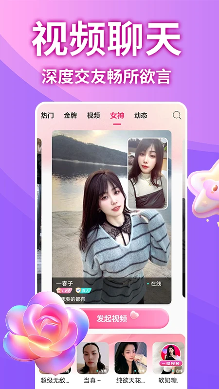 渴恋视频约会聊天是一款专为现代单身人士设计的视频交友软件,融合了视频聊天、语音互动和私信文字功能,为用户打造沉浸式的社交体验。无论是想寻找灵魂伴侣,还是希望结识志同道合的朋友,这款软件都能满足你的需求。通过智能匹配和24小时在线的陪聊服务,用户可以随时随地开启一段浪漫邂逅。丰富的动态分享功能和多样化的聊天模式,让交友不再枯燥,而是充满惊喜与乐趣。