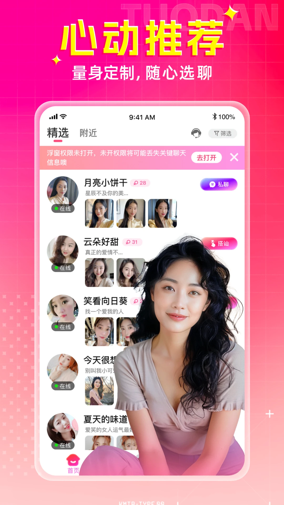 —真实安全:拒绝机器人回复和不真实的交友行为,真人认证+AI算法+人工24小时审核,保障安全靠谱的交友体验!