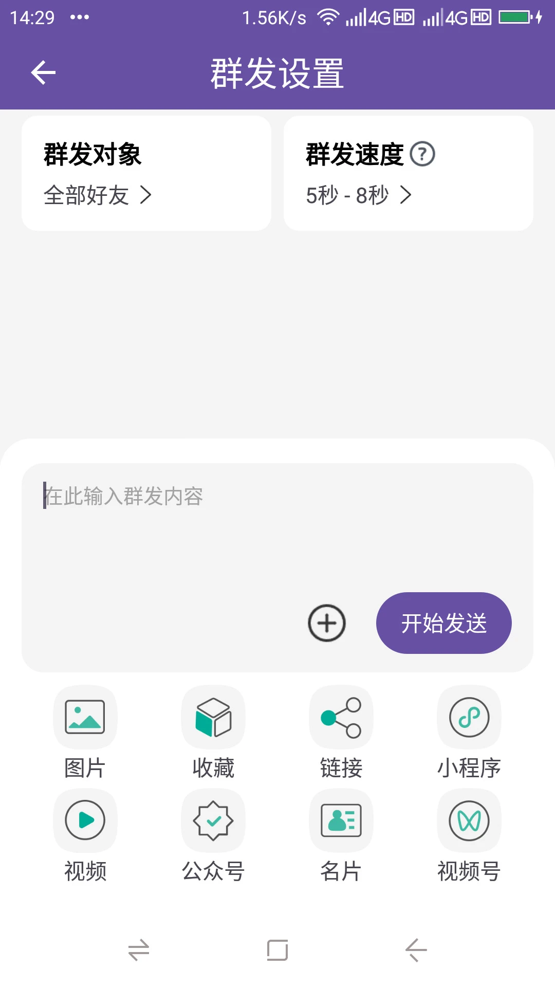 支持多种消息群发模式,包括文字、图片、视频等,满足不同推广需求。