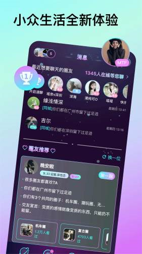 微乐园最引人注目的特色是其精准的兴趣圈子推荐系统。通过智能算法分析,App能够为用户推荐最符合其个性的兴趣圈子,无论是二次元文化、独立电影还是地下音乐,都能在这里找到专属的交流空间。社区保持着极高的活跃度,来自世界各地的用户在这里分享见解、交流创意,形成了一个充满活力的全球性文化社区。特别值得一提的是,微乐园营造了一个真实情感交流的温暖环境,用户可以毫无保留地分享自己的喜怒哀乐,找到真正理解自己的知音。
