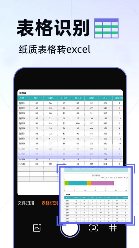 表格识别:一键拍照即可将纸质表格转换为电子版,支持多种表格格式,提升工作效率。