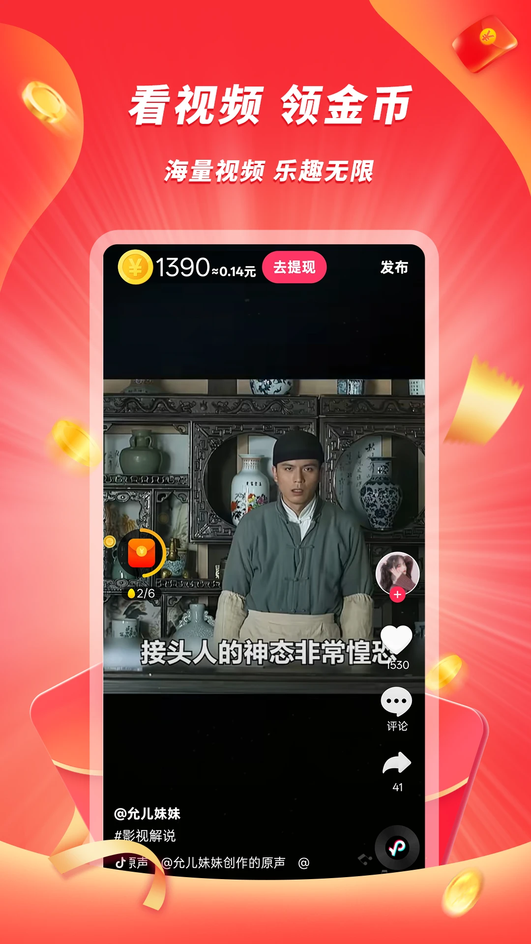 豆豆极速版是一款刷视频就能领金币的宝藏APP,金币可以兑换成零钱;每日更新海量流行视频,让您在这里刷的愉快,赚的开心!